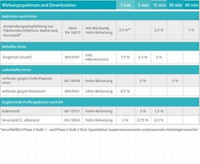 Gemäß Biozidprodukte-Verordnung (BPR):Zur Flächendesinfektion und Reinigung vonmedizinischem Inventar und Flächen aller Art.